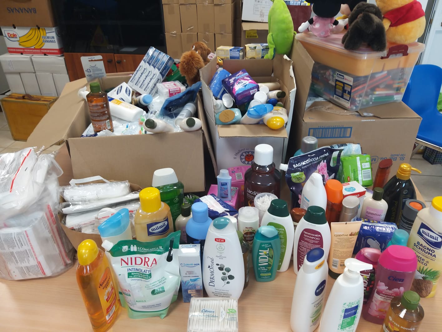 ospiti nella struttura di accoglienza di Noale (VE). A seguito dell'appello da parte degli operatori della struttura che hanno diramato una lista di beni di necessità, l'associazione ha realizzato diversi punti per la raccolta di prodotti per l'igiene personale. Le donazioni sono avvenute in occasione della festa del 1° Maggio in Piazza a Martellago e presso l'Istituto Comprensivo C. Goldoni, che ha aderito con entusiasmo all'iniziativa, prestando collaborazione.
