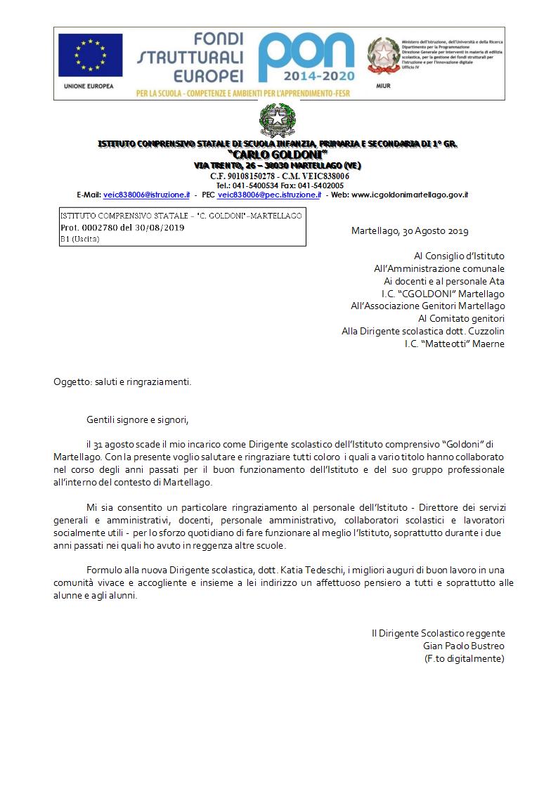 I ringraziamenti da parte della Scuola